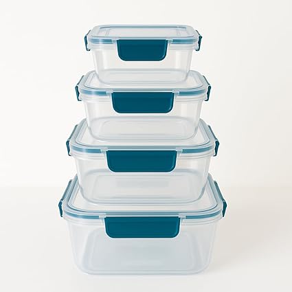Store 4’lü Kilitli Saklama Kabı Seti – Sızdırmaz Kapaklı, Farklı Boy ve Renklerde, BPA İçermez, Plastik Gıda Saklama Kutusu (Mavi)