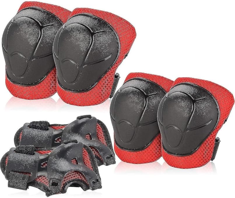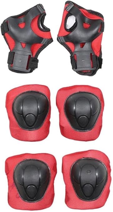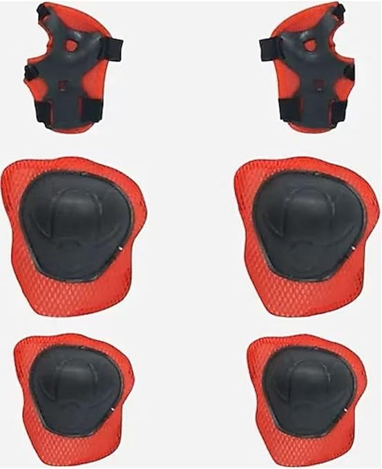 Store Koruyucu Dizlik Dirseklik El Koruyucu Set 6 PArça Bisiklet Scooter Paten Koruma 4-12 Yaş, Kırmızı-Siyah