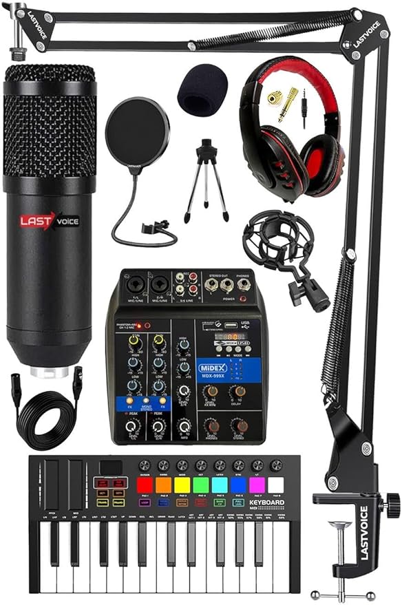 Stüdyo Ekipmanları Midi Live Paket-1 Ses Kartlı Mikser Midi Klavye BM800 Mikrofon Kulaklık