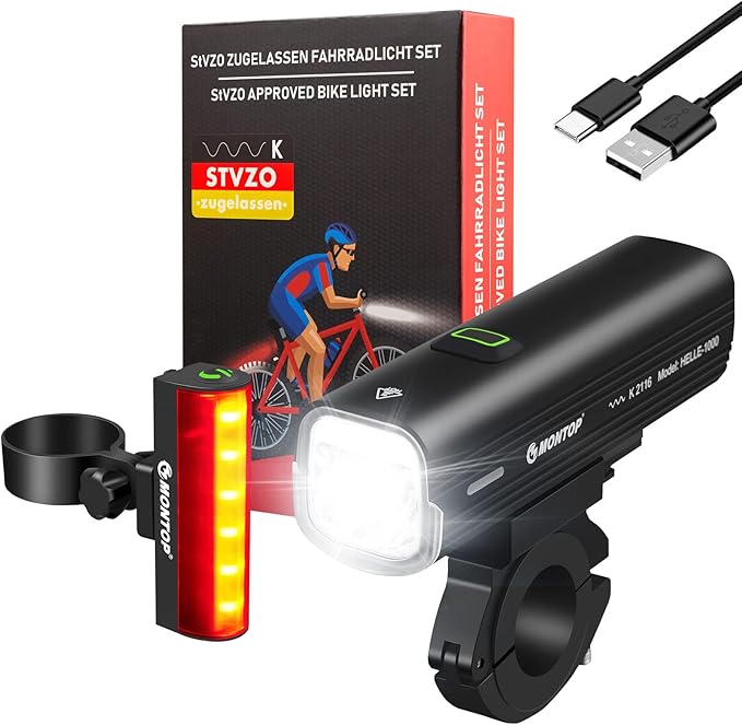StVZO onaylı bisiklet lambası seti USB pil, LED bisiklet lambası, bisiklet aydınlatma seti, ön ve arka lambalar dahil, çocuklar ve yetişkinler için bisiklet lambaları