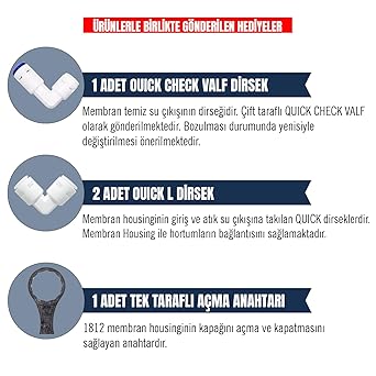 Hediye Aparatlar: 1 adet check valf, 2 adet L dirsek ve açma anahtarı paket içeriğine dahildir.