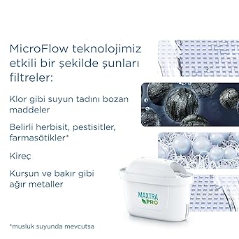 Geliştirilmiş filtre performansı: yenilikçi mikro gözenek, mikropartikülleri (≥ 30 μm) ekstra etkili bir şekilde engeller. Bazı herbisitler, pestisitler, farmasötikler gibi kirleri ve klor, kireç ve kurşun ve bakır gibi tadı bozan maddeleri filtreler.