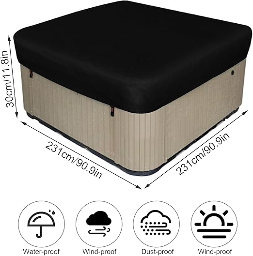 Su Geçirmez 190T Polyester Kare Jakuzi Kılıfı Koruyucu Dış Mekan SPA Kılıfları 231x231x30 cm (Siyah)