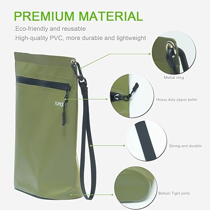 Su geçirmez fermuarlı cep, 2’li paket, çok amaçlı su geçirmez torba, dış mekan, seyahat, plaj, havuz, balıkçılık, kirli kıyafet, ıslak mayo, Ordu yeşil+sarı, Dış mekan veya sportif
