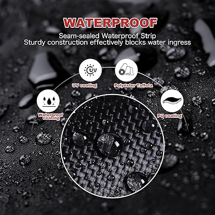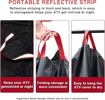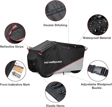 【Süper su geçirmezlik performansı】Özel tekstil işlemimizle (iki iplikli dikiş) NEVERLAND ATV örtü 1500 Pa’ya kadar su basıncına dayanabilir. Ayrıca iç katman su geçirmez poliüretan kaplamaya sahiptir, ATV’nizi mükemmel şekilde kuru tutar