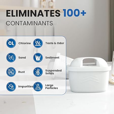 NOT: İlk kullanım öncesinde, filtroyu temiz musluk suyuna 5-10 dakika süreyle koyun, durulayın ve hava kabarcıklarını giderin. En iyi sonuçlar için, filtroyu her 1 ayda bir değiştirmenizi öneririz. Değişim sıklığı suyun kalitesine bağlıdır.
