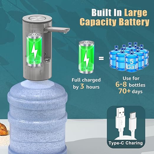 Su şişesi pompası, 5 galon: Su sebili, pompa, taşınabilir, katlanabilir su çıkışı, USB şarjı destekler, otomatik su sebili, 2 adaptörlü, ev, mutfak, ofis, kamp için