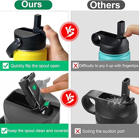 【İtme ALT AĞZ KAPAĞI】Eğimli açılı ağız ile tasarlanmış otomatik açılır ağız kapağı tek elle içme deneyimi için daha uygundur, içecek ağzı, suyu emmek için çok fazla kuvvet olmadan büyük miktarda su akışı sağlar, bu da çeşitli durumlarda ihtiyaç için çok uygundur.