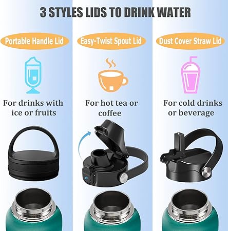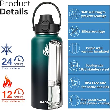 【BPA İÇERMEZ VE SIZDIRMAZ】Hasır kapaklı XACIOA su şişesi BPA içermez, gıda maddeleri için güvenlidir ve geri dönüştürülebilir, buz içeceğinizi 24 saate kadar SOĞUK ve 12 saate kadar SICAK tutar, Her yudumunuzun istediğiniz atış olduğundan emin olun. 3 yedek kapak iyi bir şekilde kapanır ve %100 sızdırmazdır, böylece içebilirsiniz. dökülmeden git, ıslanıp çantanıza koymaktan endişe etmeyin.