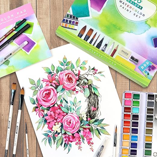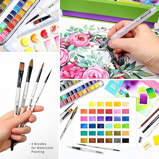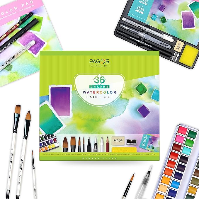 Diğer avantajları: Bir sanat projesi oluşturmak için artık her sanat malzemesine para harcamanıza gerek yok. Bu sulu boya seti, genellikle sulu boya işlerinde kullanılan tüm sanat eşyalarını içerir. 12 yaprak sulu boya bloğu, yüksek kaliteli soğuk preslenmiş sulu boya kağıtlarından oluşur. Boyamak için doldurulabilir bir fırça da kullanabilirsiniz.