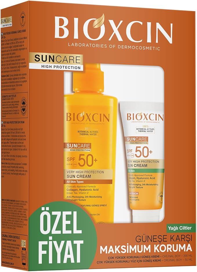 Sun Care SPF 50 Güneş Koruyucu Set – Yüz Kremi 50 ml + Vücut Spreyi 200 ml – Kuru ve Normal Ciltler İçin, Suya Dayanıklı, Anti-Alerjik