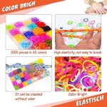 Sunte 32 renkli Loom bant seti, 1500 halka lastik hediye, 7 – 14 yaş arası çocuklar için, Loom bant aksesuarı, güzel desenli kolye uçlu, meyve alfabe boncukları, saklama kutusu, örgü