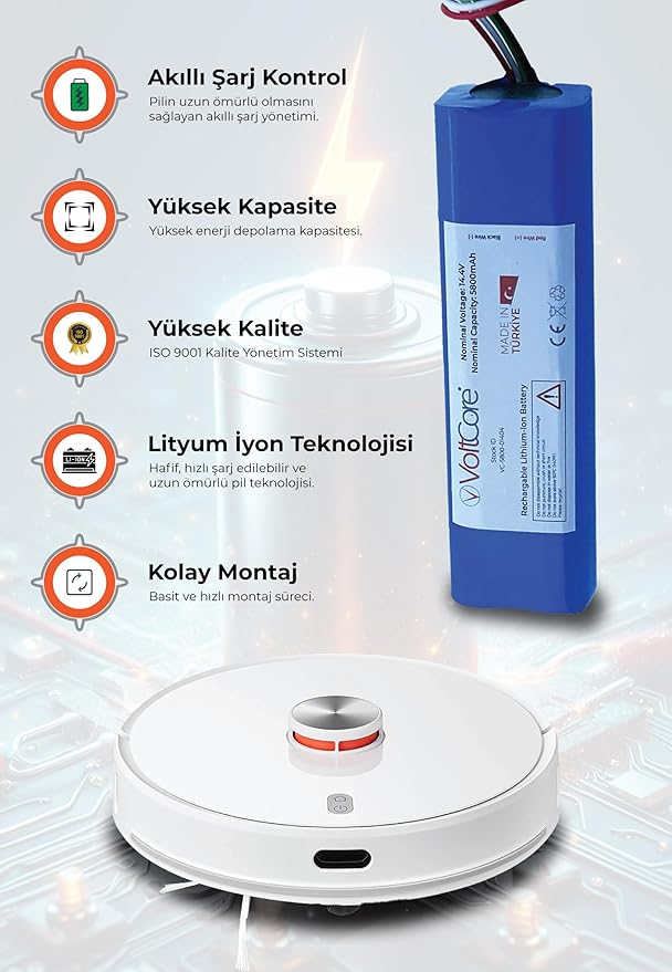 VoltCore Robot Süpürge Bataryası 5800 mAh Pil Roborock S5 Max ile Uyumlu