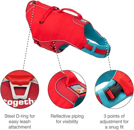 GÖRÜNÜRLÜK İÇİN YANSITICI KISIM: Parlak renkli can yeleği uzak mesafelerden görülebilir ve gece görünürlüğü için yansıtıcı bir kesime sahiptir; tasma bağlantıları için 2 metal D halkasına sahiptir; takılı şişe açacağı içerir