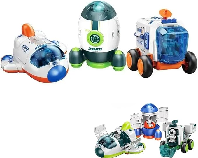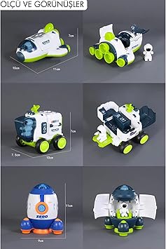 Sürtmeli Astronotlu Uzay Arabası Uzay Roketi Uzay Mekiği 3 lü Uzay İstasyonu Araçları Seti