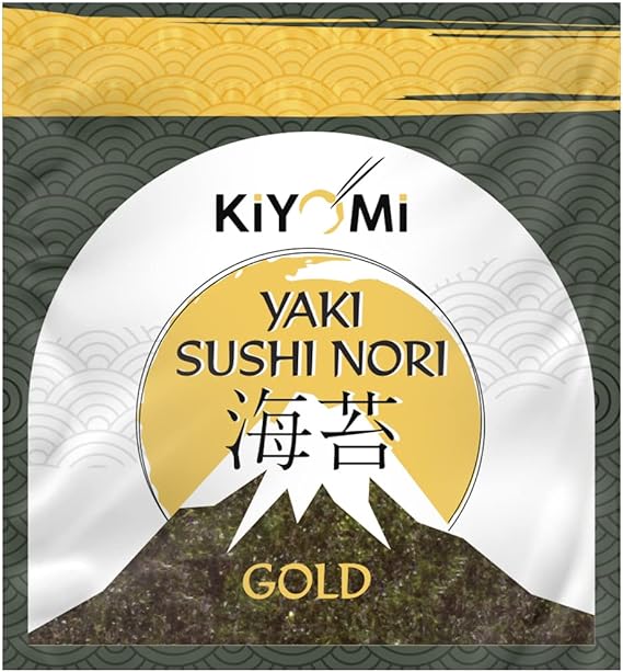 Kiyomi Yaki Sushi Nori Gold Kurutulmuş Deniz Yosunu – 5 Yaprak – Kiyomi Nori, sushi ve Asya mutfağı tariflerinde mükemmel lezzet ve doku sunan, doğal ve besleyici bir üründür.