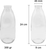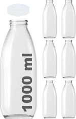 Süt Ayran Şişesi Şeffaf 1000 ml Plastik Kapaklı Boş Cam Şişe 6 Adet