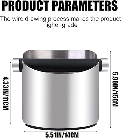 【Kaliteli malzeme】 Kahve toplama kutusu paslanmaz çelikten üretilmiştir, sağlam ve uzun ömürlüdür, kalın ve uzun ömürlü malzeme darbe sesini absorbe eder, kahve telvesi kabı, kahve setinizin filtreden kolayca boşaltılması için çıkarılabilir dolgulu bir silikon çubuk ile gelir, Espresso Knock Box mutfağınızda kesinlikle gerçek bir cazibe olacaktır!