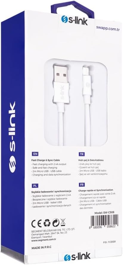 SW-C508 2m 2.4A Usb to Micro Usb Beyaz Data + Sarj Kablosu