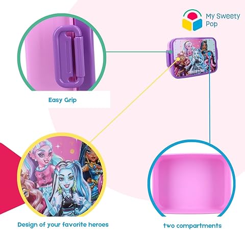 sweety pop – Öğle yemeği kutusu, öğle yemeği kutusu, Monster High çocuklar için, kreş, anaokulu, okul, tatil, yemek kutusu, 16 cm, kız çocukları için, mor/pembe – hediye fikri