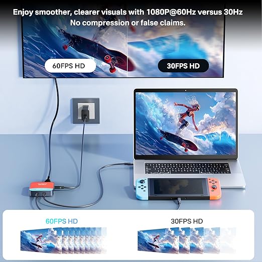 [1080P 60FPS HD Yakalama] 1080P60FPS yakalamayla, gerçekçi grafikler ve akıcı hareketlerle dolu bir dünyaya dalın, ultra akıcı oyun kaydı sağlar ve oyun maceralarınızın her ayrıntısını çarpıcı netlikte korur.