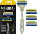 SWORD – Hydro 5 erkek tıraş makinesi | Aloe Vera tahrişi azaltmak için | hassas nemlendirici jel ve düzeltici | tıraş makinesi + 3 yedek bıçak