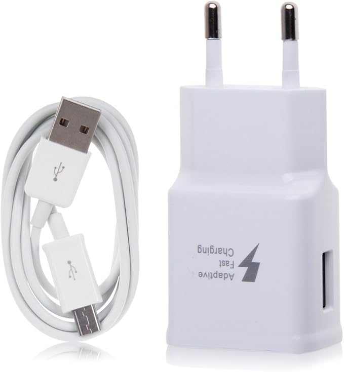 Şarj cihazı Samsung Galaxy S7 Edge hızlı şarj teknolojisi AFC 2 A, beyaz (orijinal kablo 150 cm USB kablosu