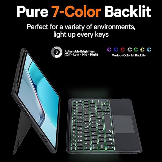 Tab S10+ Plus/S9+ Plus/S9 FE+ Plus 12.4 için ile Uyumlu Mag Touchpad Blutooth Işıklı Standlı Klavyeli Kılıf