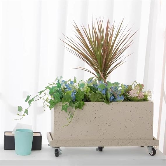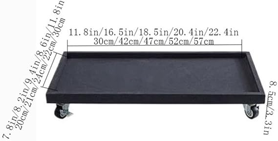 Tabağı Taşınabilir Tekerlekli Saksı Paleti Damlama Kasesi, Dikdörtgen Sentetik Reçine Bardak Altlığı Saksı Kabı (Siyah, XL)