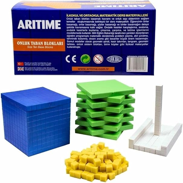 Taban Blokları, Renkli Bloklar Matematik Materyali, Birlik, Onluk, YüzlükUygunluk: 30 adet stokta