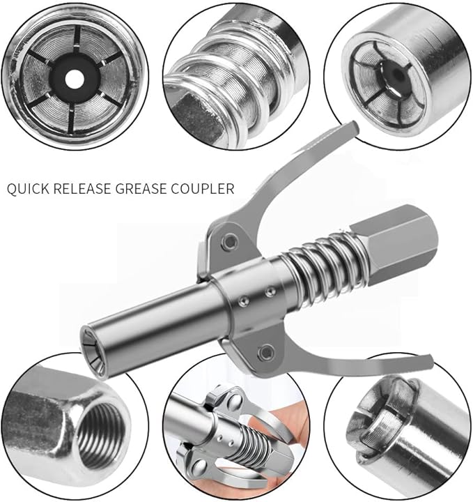 【Tüm yağ presleri için uygundur】Tüm yağ presleri için uygundur. 1/8 inç NPT bağlantısı. Pnömatik, manuel ve elektrikli her türlü yağ presleri için uygundur. Korumalı mafsal milleri, miller, biçerdöver üniteleri, U şeklinde eklemler ve diğer gömülü yağlama nipelleri için uygundur.