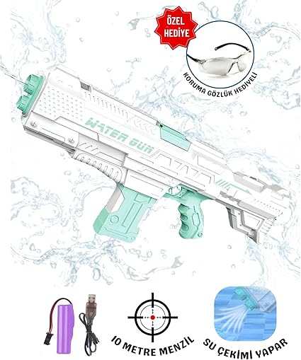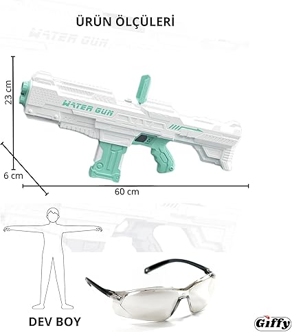 Tabancası Şarjlı Elektrikli Su Emiş Yapabilen Otomatik Taramalı 10 Metre Menzilli 60 CM Büyük Boy 800 ML Kapasite Dev Boy Su Tüfeği (Turkuaz)