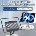 Tablet Standı 360° Dönebilen Tablet Tutucu Katlanabilir Alüminyum Tablet ve Telefon Standı – Gri