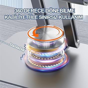 Çok Yönlü Tasarım: 360° dönebilen esnek tasarımı sayesinde tableti veya telefonu istediğiniz konumda kullanabilirsiniz.