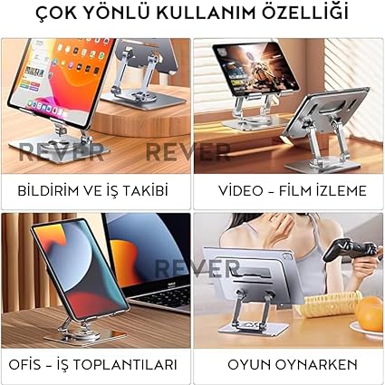 Tablet Standı 360° Dönen Metal Masaüstü Açılı Katlanabilir Tablet Tutucu Stant