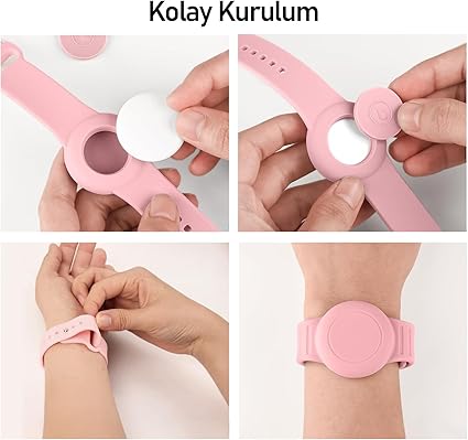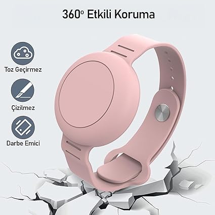 TagSafe Çocuk Bileklik Silikon AirTag Uyumlu Kılıf Saat Hafif Su Geçirmez (Pembe)