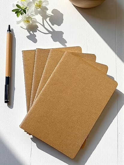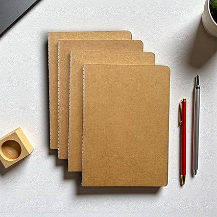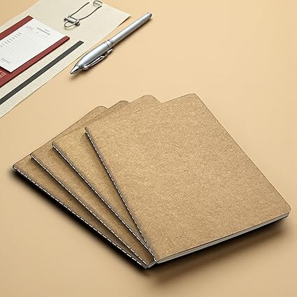 Tanıtım 4 Adet Çizgili Terzi Dikişli Not Defteri, A5 Boyut, 40 Yaprak Planlama Ofis İçin İdeal, Planlayıcı (Kraft Kapak Tasarımı)