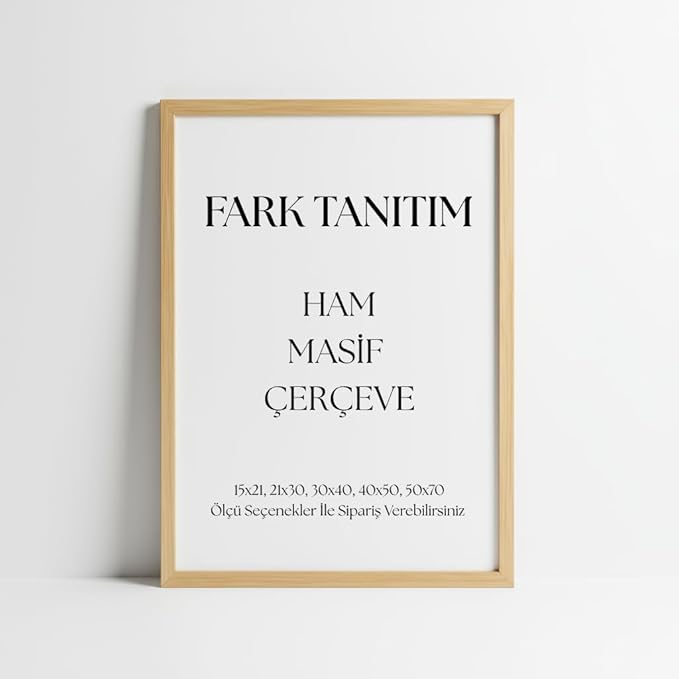 Tanıtım Premium Masif Çam Çerçeve – 3mm MDF Arkalık – 500 Mikron Kırılmaz Şeffaf PVC Ön Koruma – Şık ve Dayanıklı Duvar Ahşap Çerçevesi (Ham, 50cm x 70cm)