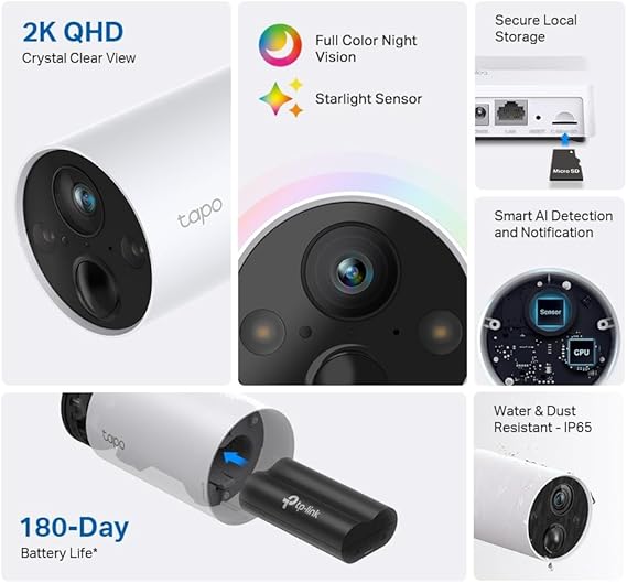 Tapo C420S1, 2K QHD Kablosuz Bataryalı Güvenlik Kamerası, Yapay Zeka Desteği, Renkli Gece Görüşü, 180 Gün Şarj Süresi, Su Geçirmez, Yerel/Bulut Depolama, Sesli Alarm, Solar Panel Desteği + HUB