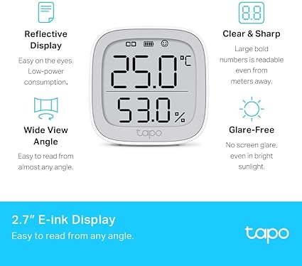 Tapo T315, Akıllı Sıcaklık ve Nem Monitörü, Ücretsiz Veri Depolama, LCD Ekran, Gerçek Zamanlı Bildirimler, Pil Dahildir, Alexa ve Google Home ile Çalışır, Tapo Hub Gereklidir Ayrıca Satılır