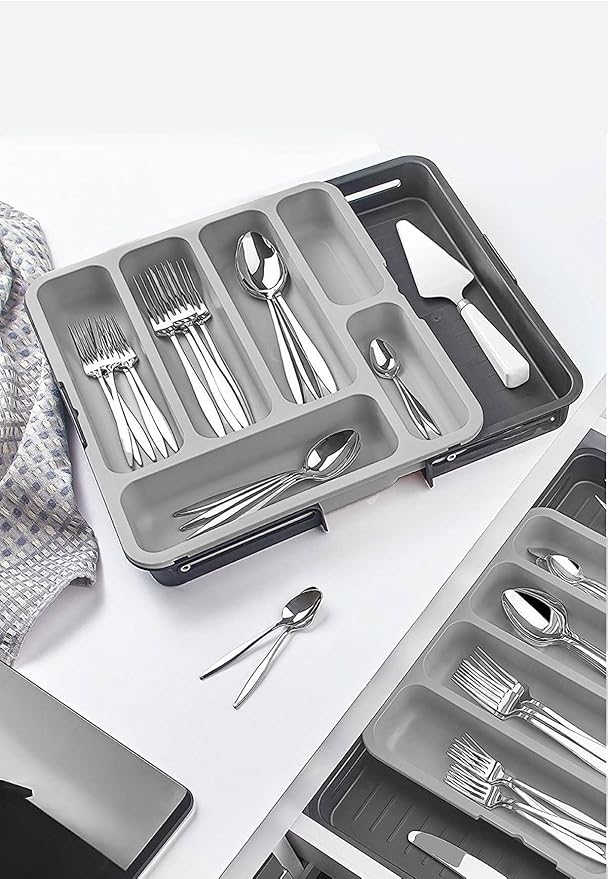 Çok Yönlü Kullanım: Bu ayarlanabilir kaşıklık, çekmece içlerini düzenlemeye ve çatal bıçak gibi mutfak eşyalarını saklamaya yardımcı olur.