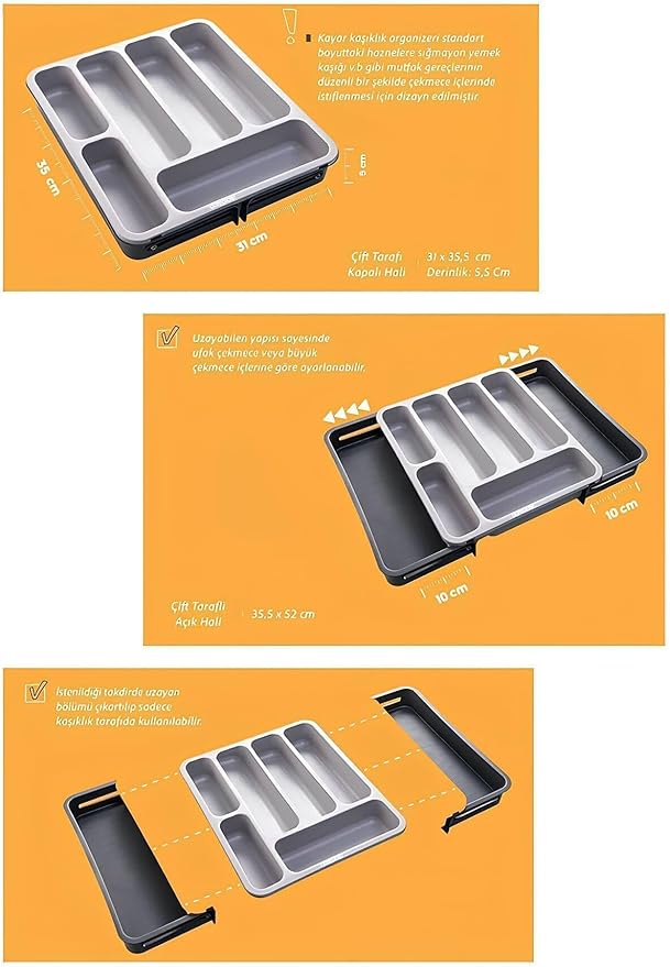 Taraflı Ayarlanabilir Organizer Çekmece Içi Kaşıklık Uzayabilen Çatal Bıçaklık Düzenleyici