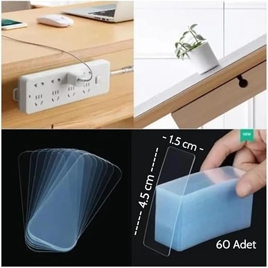 Taraflı Şeffaf Bant Şeffaf Bant 60 Parça Kutulu Montaj Bandı Tekrar Kullanılabilir Çift Taraflı Bant (1,5 x 4,5cm)