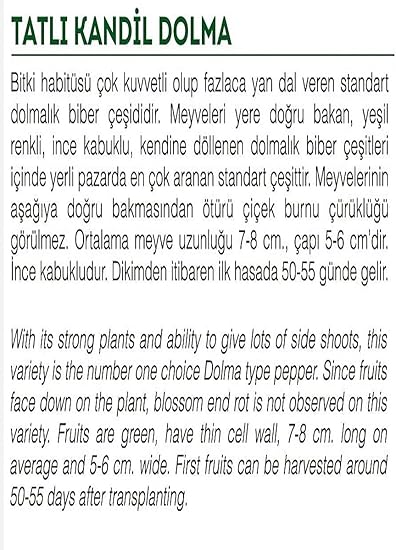 Bu dolma biberi tohumu Tamamen doğal yöntemlerle üretilmiştir.