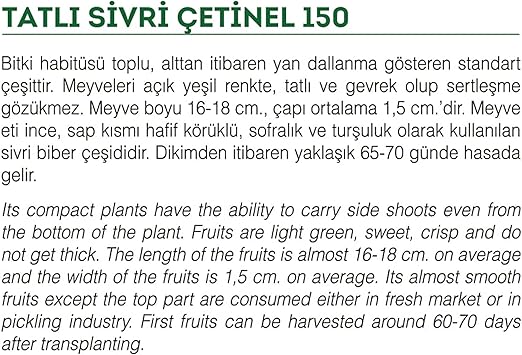 Tarım Ata Tohumu Tatlı Sivri Çetinel Biber 100 Adet Tohum