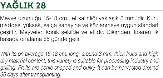 Kurutmalık, salçalık, mangalda ve taze tüketim olarak kullanıma uygundur.