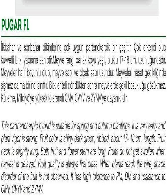 TARIM HİBRİT ASMA SALATALIK PUGAR-F1 10 ADET TOHUM