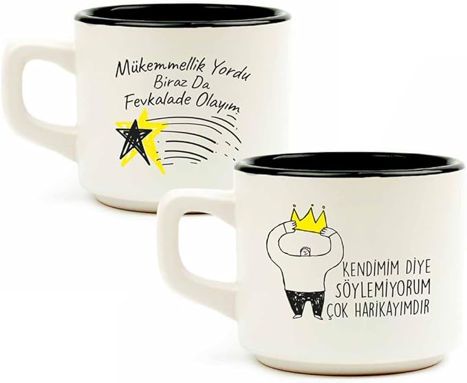 TASARIM Çok Harikayım Mottolu 2’li Beyaz Venüs Kupa – Hediye Seramik Kupa