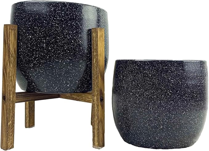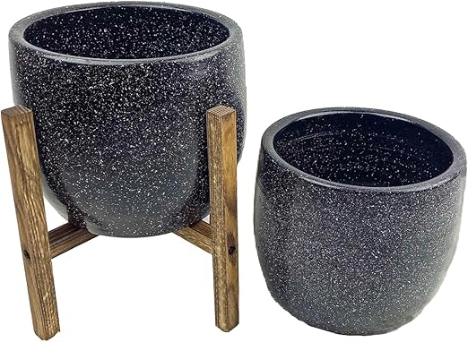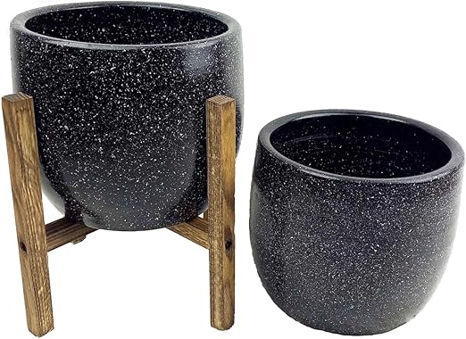 Tasarımı Ev Dekorasyon Aksesuar Siyah Granit Toprak Saksı Saksılık Salon Çiçeklik İkili Set Ayaksız – 4 Ayaklı- 19 CM