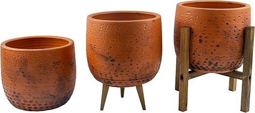 Tasarımı Ev Dekorasyon Aksesuar Siyah Nokta Desenli Toprak Saksı Saksılık Salon Çiçeklik Üçlü Set – 19 CM